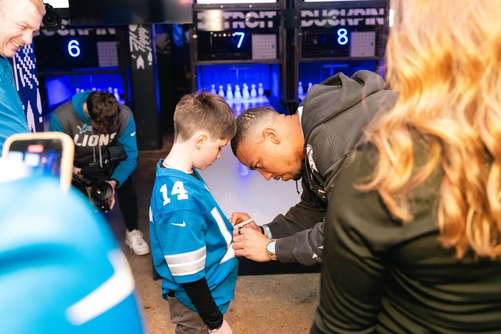 Learn MoreOn November 3rd, Wicked Awesome Wishes partnered with the St. Brown Foundation for its Inaugural Strike for Literacy event at Five Iron Golf in Detroit. Guests spent the evening alongside Detroit Lions star Amon-Ra St. Brown, enjoying golf, duckpin bowling, and an exclusive meet-and-greet; all in support of a powerful cause.